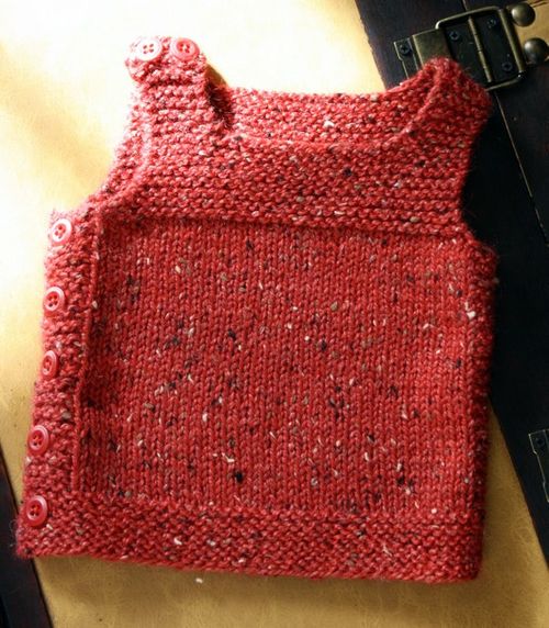 I have a lot of love for this pattern - the Pebble Vest by Nikol Lohr - and am resisting the urge to cast on another in a different color. I found one skein of a beautiful blue wool on sale today and stumbled across some really cute little buttons with anchors on them while looking for these red buttons in my stash today so I might give the similar but completely different Baby T-Shirt Vest pattern a try instead.