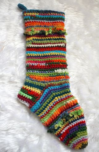 Unfortunately by the time we finishing finding things for his stocking, it was too small! So instead he used the stocking I crocheted two years ago (which I just realized I never photographed to add to Ravelry).