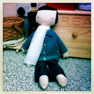 My first finished sewing project with the new machine was the doll in the (kind of lousy) photo. It's the Poppy Doll pattern from Hop Skip Jump and I cannot BEGIN to tell you how well this pattern is designed! I have loads of trouble with dolls when you have to squash the arms and legs inside and stitch around the body and you don't have to do that at all with this pattern (insert sigh of relief). I will tell you, though, that she's wearing a scarf because I'm pretty rubbish as sewing the head to the body. And I tried SEVERAL times. Ah well. And I'm a terrible blogger as I've totally forgotten what pattern I used to knit the little blue sweater.